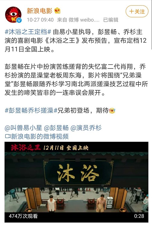 先来说说《沐浴之王》,根据电影推介会上的介绍,定档12月11日的《沐浴之王》无论从题材的独特性还是选角上的灵魂契合度,都初步显露出其得天独厚的喜剧实力。热气腾腾的澡堂子文化加上犹如神来之笔的新CP“搓澡兄弟”彭昱畅、乔杉,真是妥妥地对味儿了!