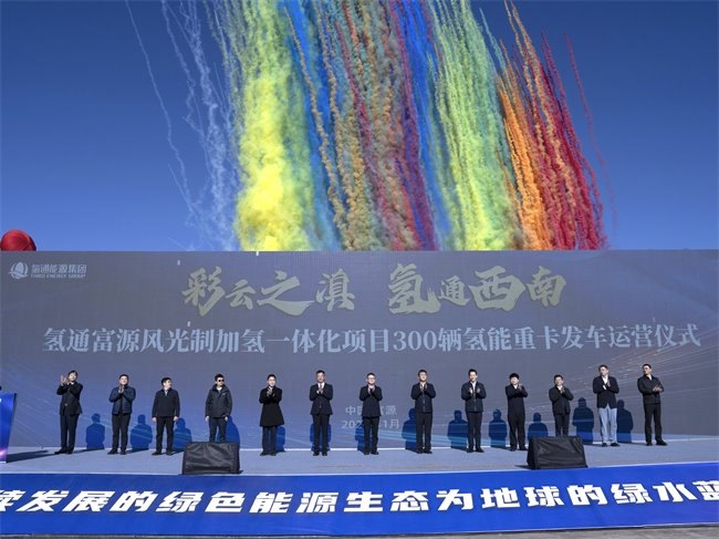 2026年1月16日,云南省富源县煤炭智慧物流园区内,中国西南“氢走廊”贯通仪式暨氢通富源风光制加氢一体化项目300辆氢能重卡发车运营仪式正式启动。中国西南“氢走廊”是以“绿色能源+传统产业+绿色交通”为核心,深度融合地方煤炭产业发展,打造从可再生能源到终端应用全链条闭环的标杆性氢能综合应用项目。该项目标志着氢通能源集团与云南富源县的战略合作进入实质性落地阶段,串联盘州、富源、昆明的氢走廊就此打通。