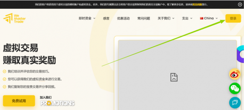 1 注册并开通模拟账户登陆WeMasterTrade官网https://wemastertrade.com/zh/,注册账号。