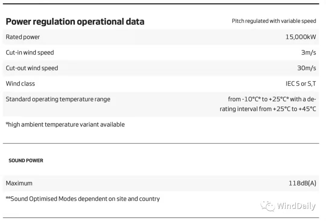 维斯塔斯V236-15MW机型技术参数如下: