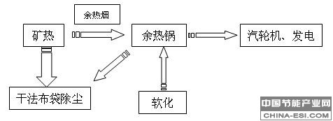 矿热炉高温烟气导入余热锅炉,蒸汽驱动汽轮机组从而带动发电。